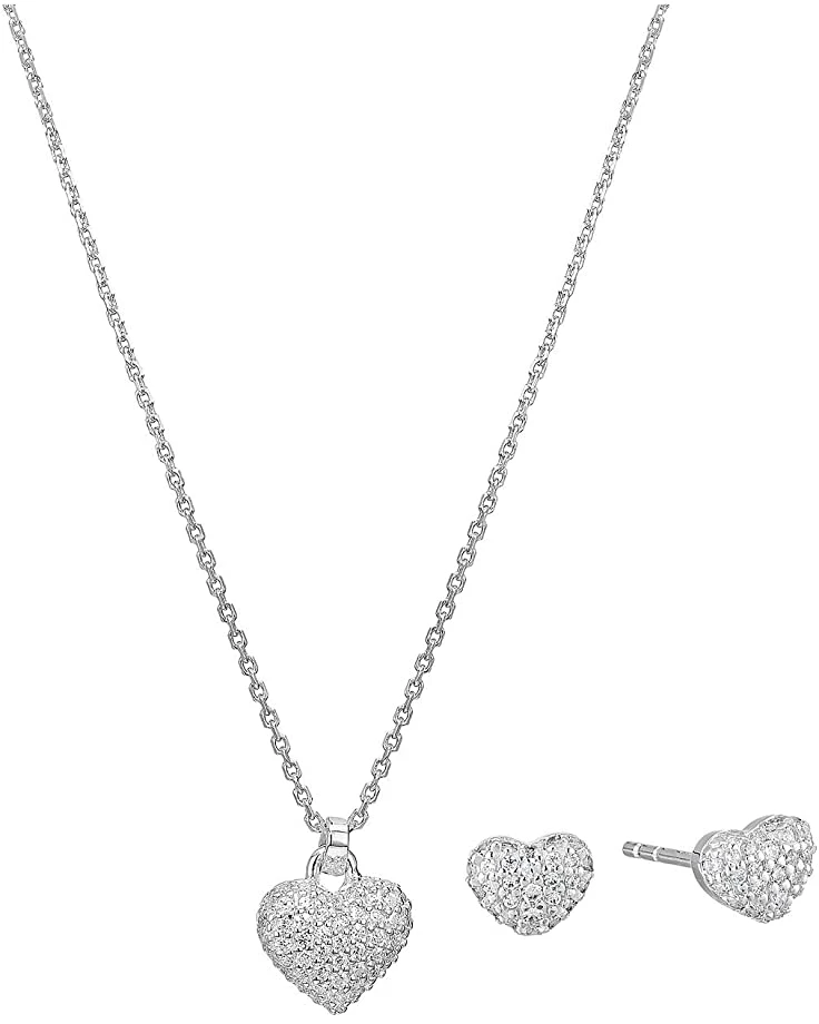 - The Michael Kors® Necklace Box Set features a matching pave heart slider bracelet and post back stud earrings.