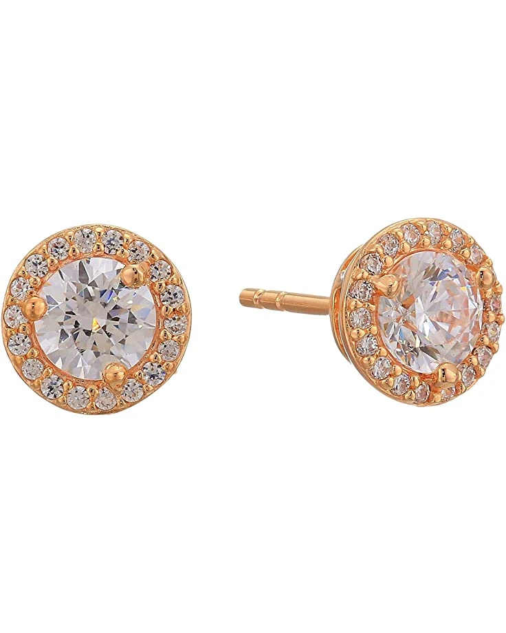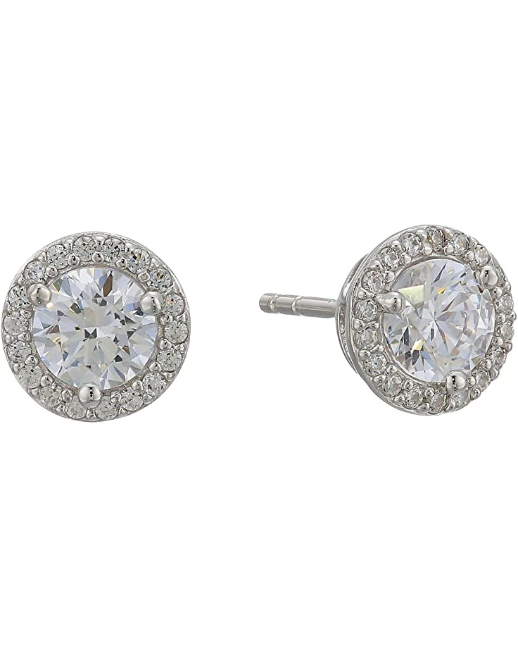 - Stud earrings feature logo detail and pave cubic zirconia accents.