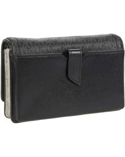 - Interior features two zip compartments, an open Compartment, phone pocket, two slit pockets, six card slots, and an ID window.
