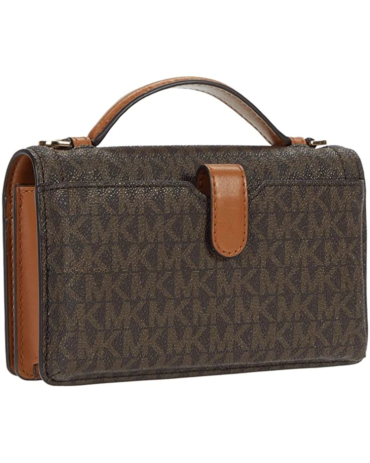 - The MICHAEL Michael Kors® Jet Set Charm Small Top-Handle Phone Crossbody features a monogrammed coated canvas exterior, flat top handle, removable crossbody strap, and rear exterior phone pocket with snap closure.