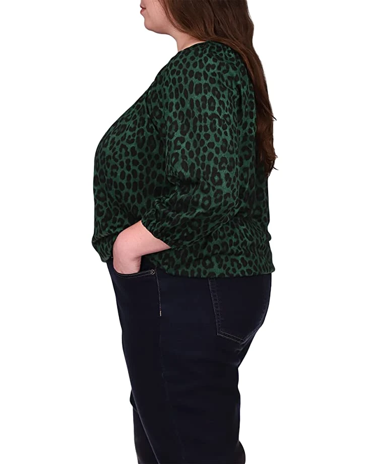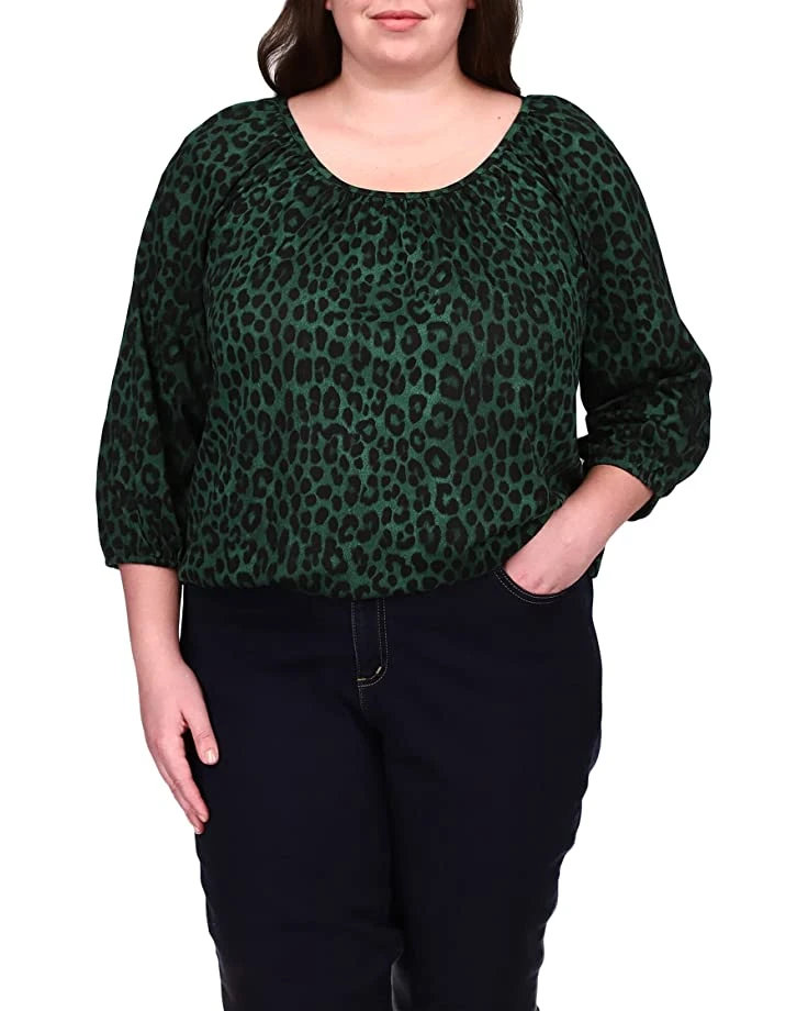 - With a round neckline, three quarter sleeves with elastic cuffs, and an elegant allover pattern, the MICHAEL Michael Kors® Plus Size Mega Cheetah Peasant Top is a style that can easily be layered and paired with your favorite jeans or jacket.