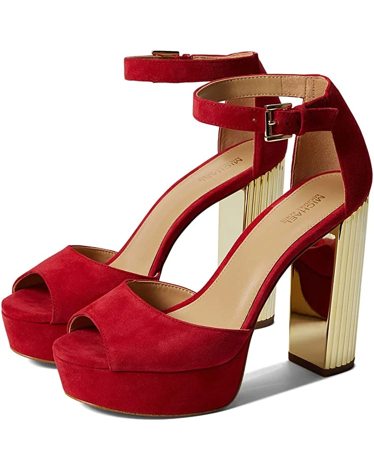 - Featuring a tall goldtone galvanized block heel, the MICHAEL Michael Kors® Porter Ankle Strap heel sandals complement your retro style and look.